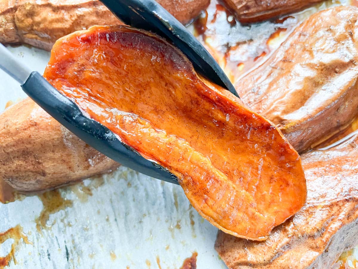 - Roast Cut-Side Down: Placing the sweet potatoes flesh-side down allows direct contact with the hot pan, creating deeper caramelization.